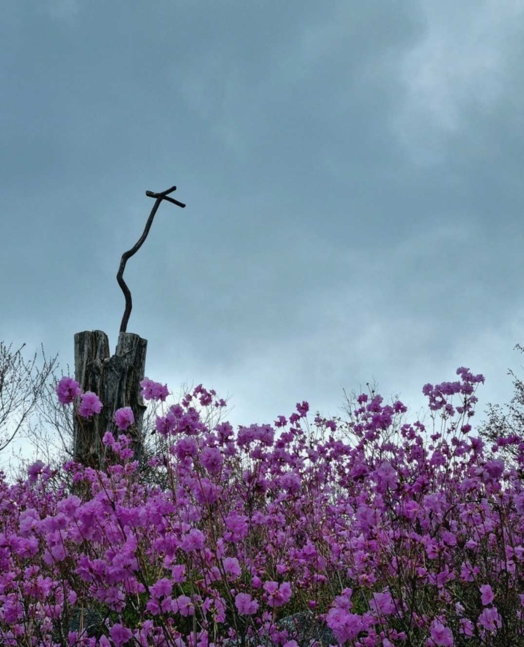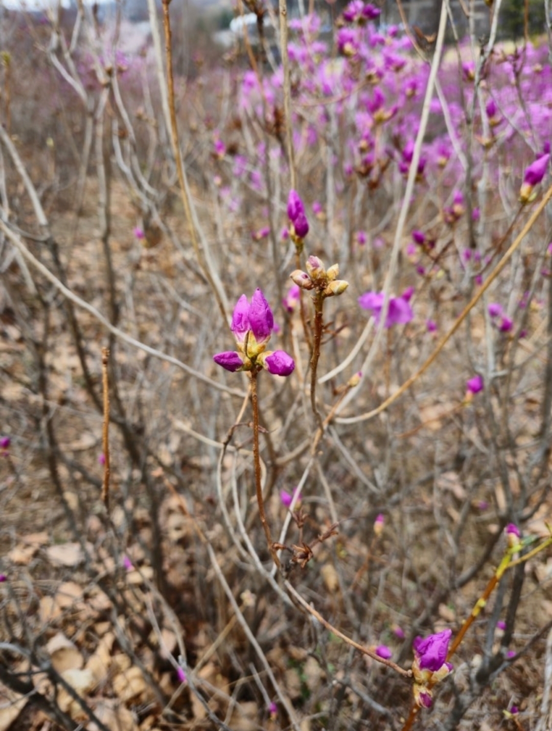 진달래가 일제히 꽃망울을 터뜨리는 모습은