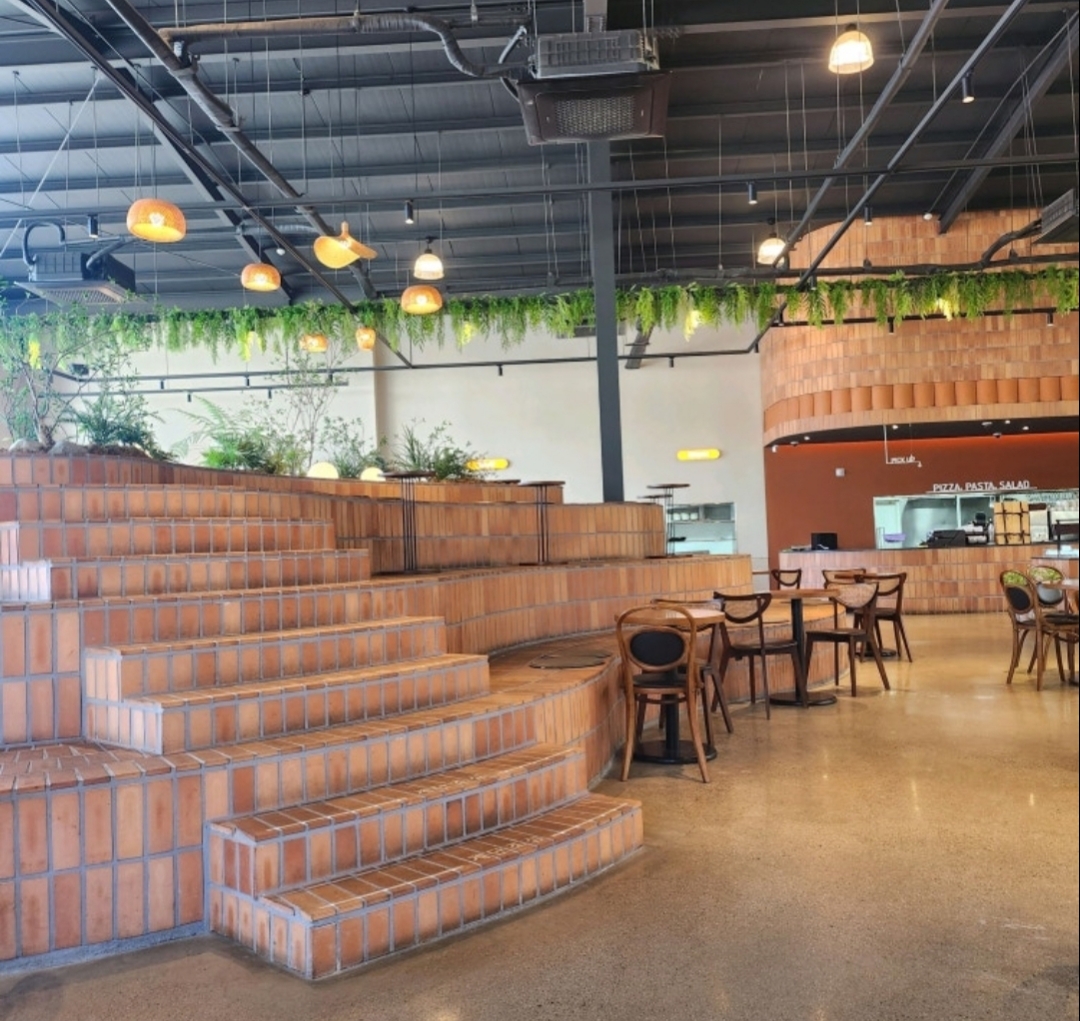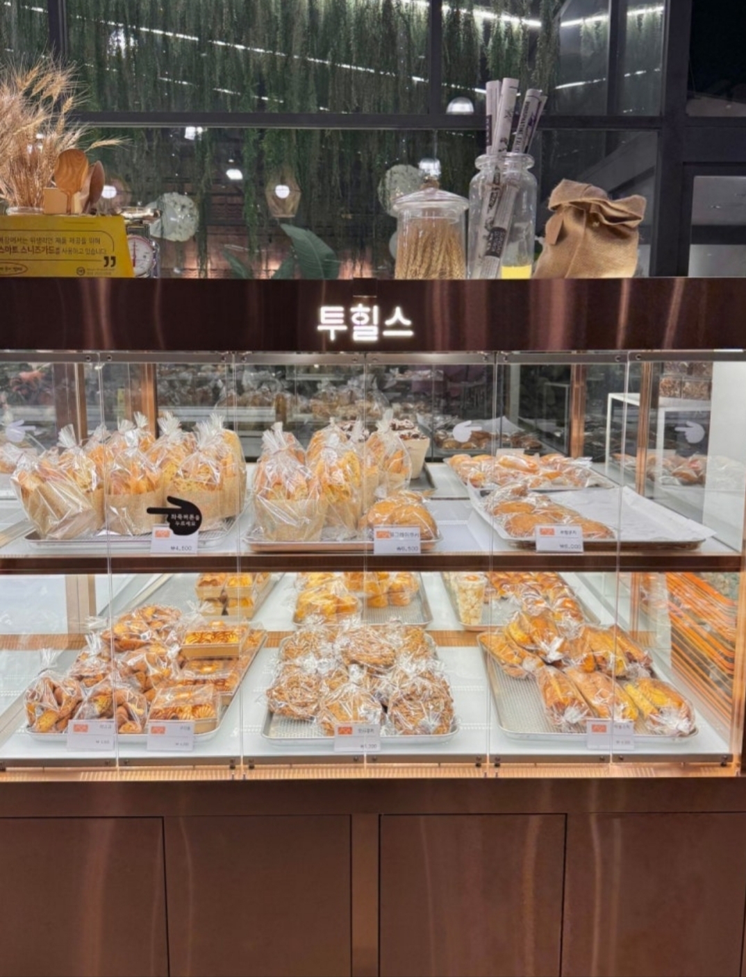 입구에 들어서면 큰 유리문과 벽돌 외관이 반겨줘요.