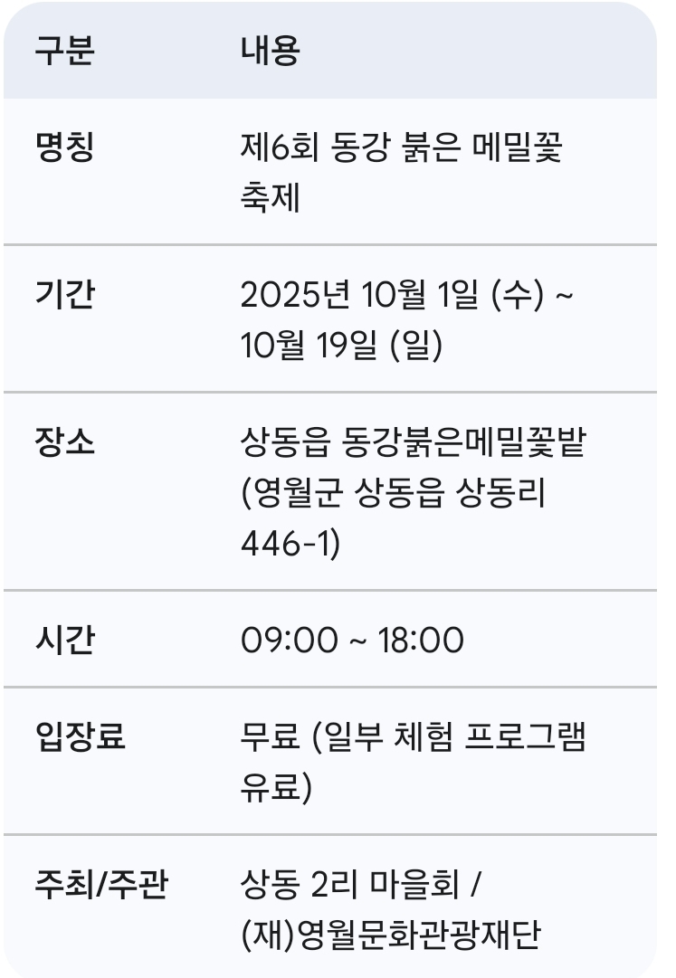 2. 📍 제6회 동강 붉은 메밀꽃 축제 기본 정보