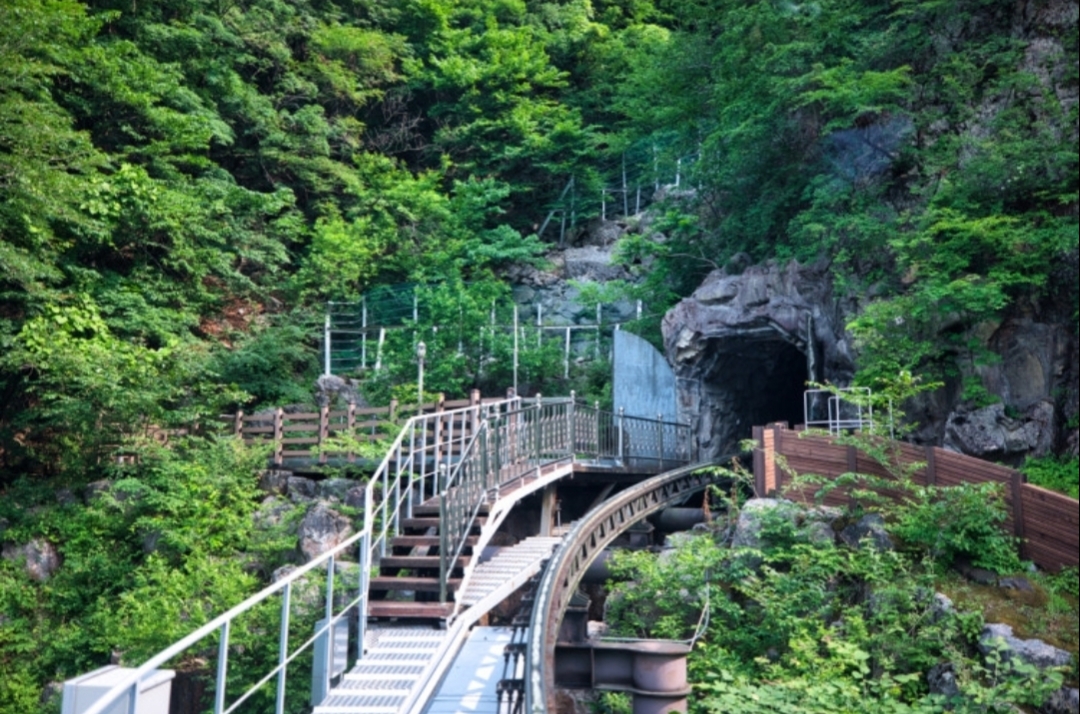 대금굴에 가면 꼭 타봐야 할 것이 바로 모노레일이에요. 모노레일을 타고 올라가면서 아름다운